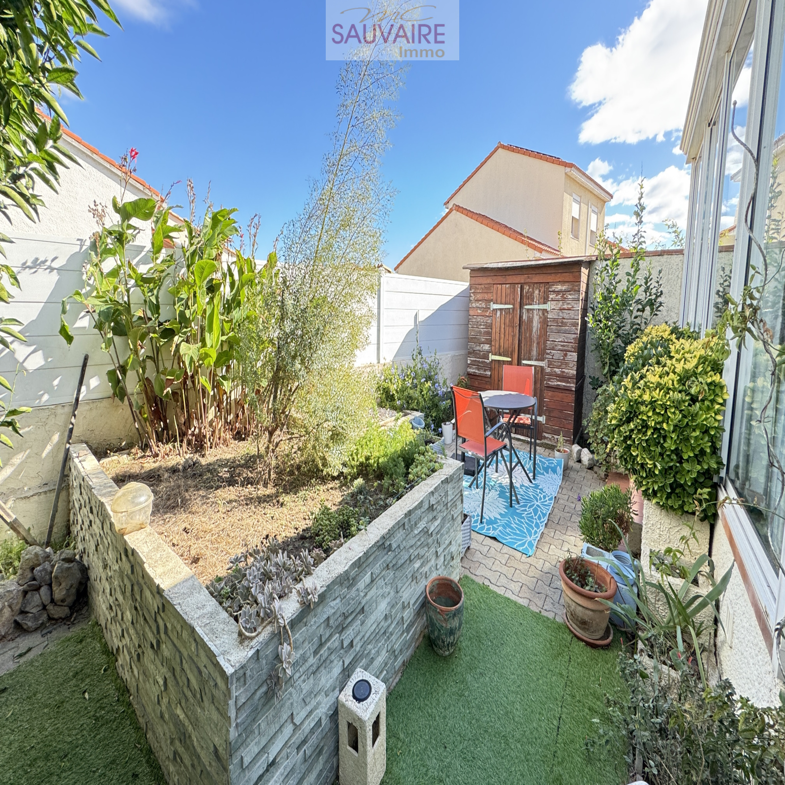 À l'extérieur, vous profiterez d’un jardin arboré et fleuri, d’un abri de jardin en bois, ainsi que d’une allée de stationnement pour véhicule.