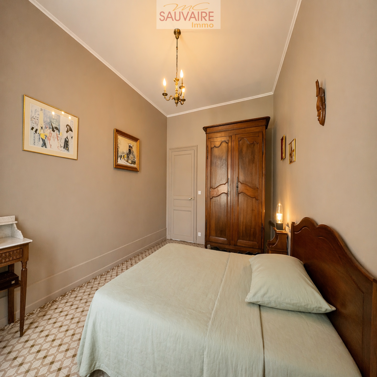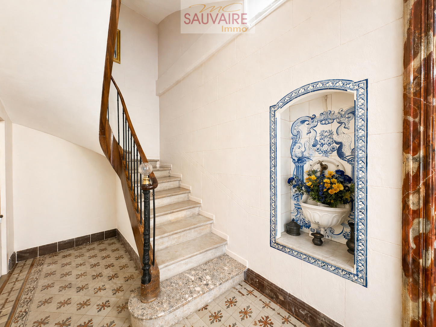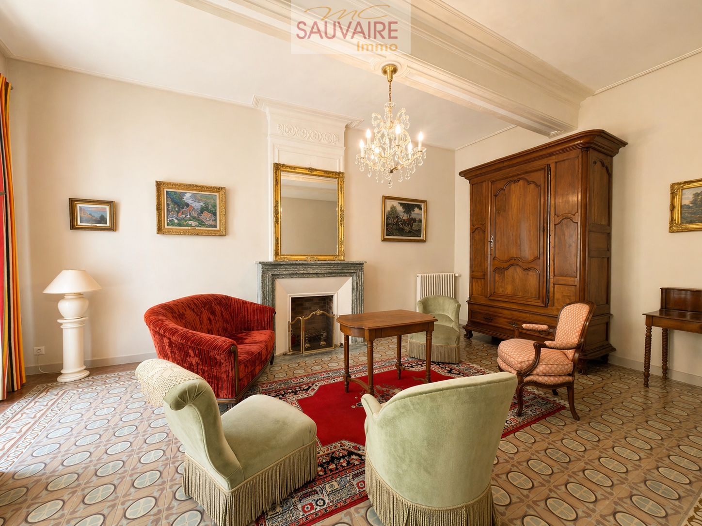 Dès l'entrée, le charme opère : volumes remarquables, carreaux de ciment d’époque, moulures raffinées et belle hauteur sous plafond composent une une atmosphère accueillante et élégante. Le rez-de-chaussée s’organise autour d’une vaste entrée desservant une belle salle à manger, un salon lumineux, une cuisine indépendante entièrement équipée, ainsi que des toilettes avec lave-mains.