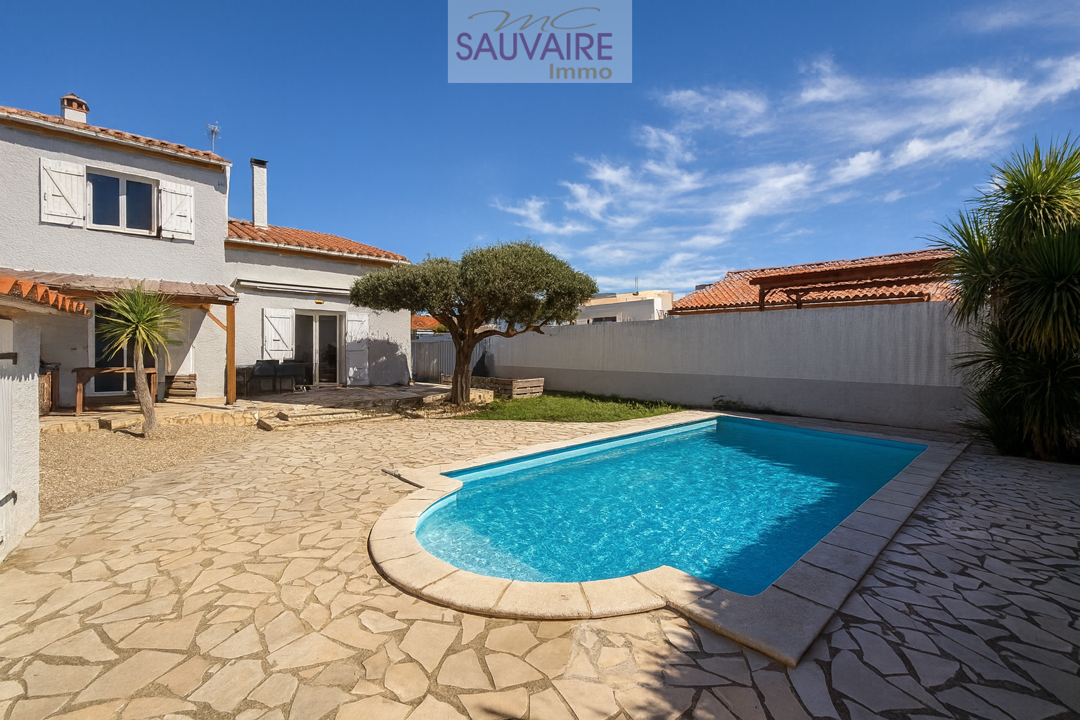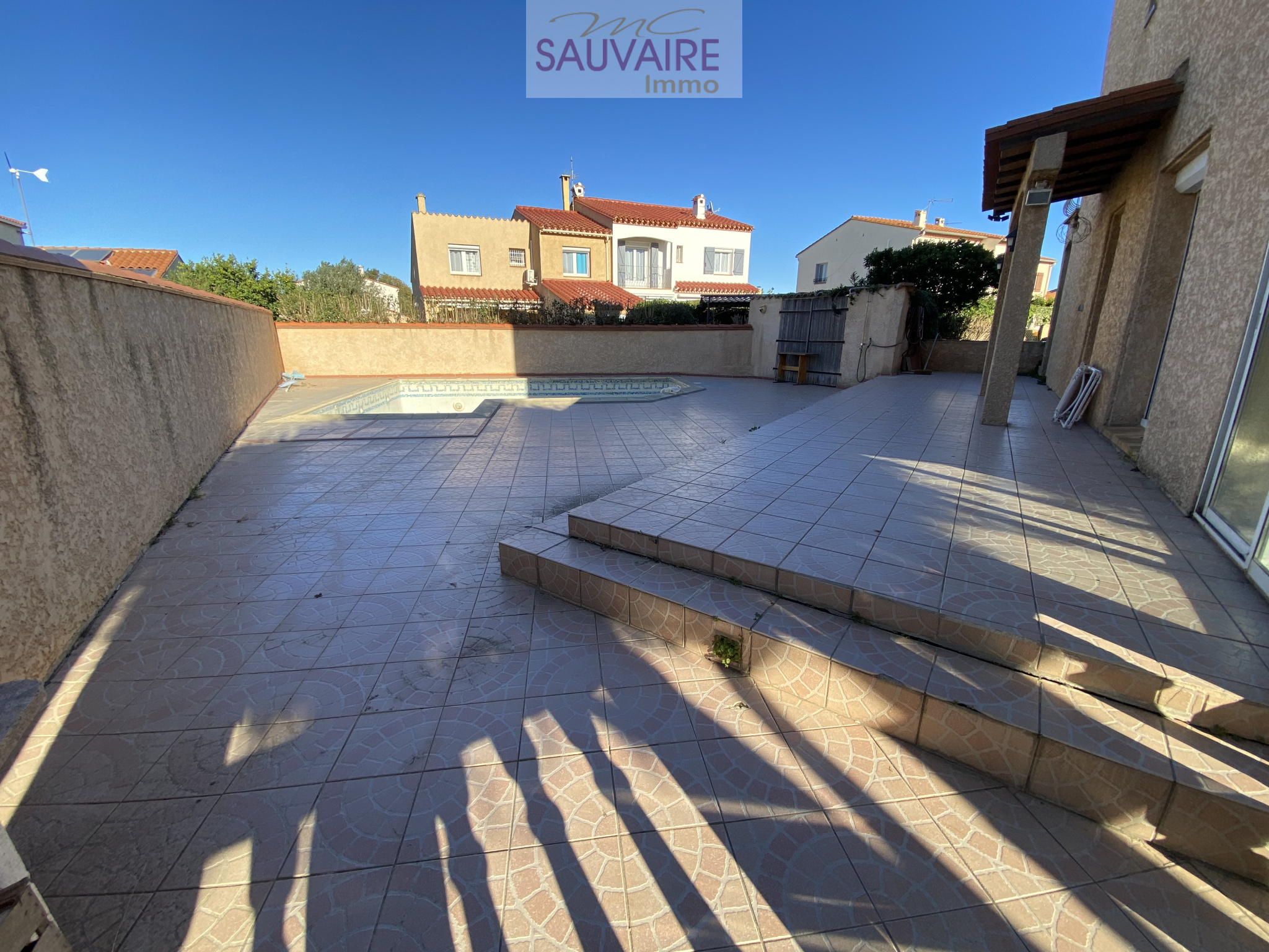 À Saint-Laurent-de-la-Salanque, Sauvaire Immobilier vous propose à la vente cette belle villa 3 faces, de 112 m² habitables, édifiée en R+1 sur un terrain clos et arboré, avec piscine.